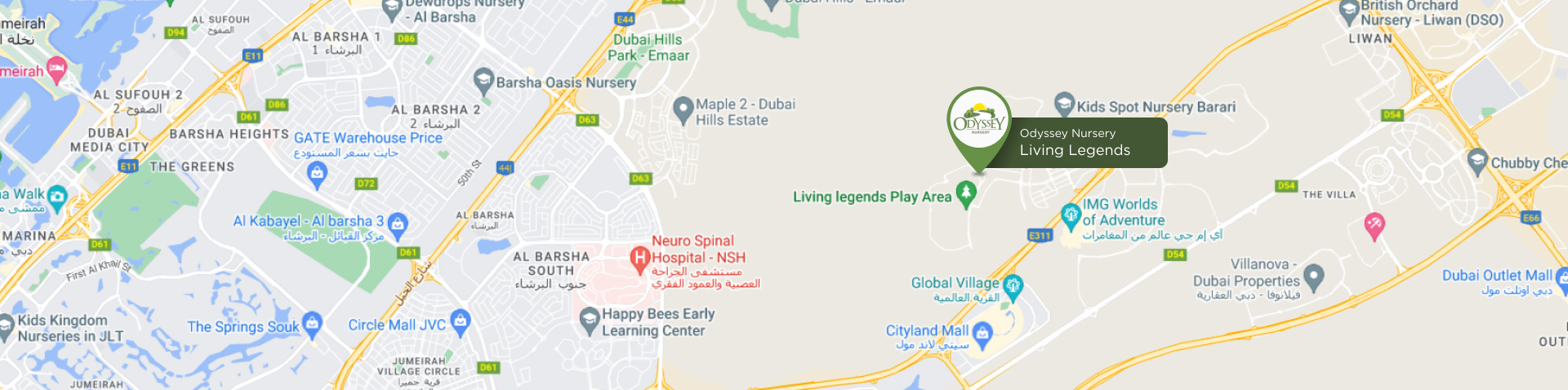 Located in Living Legends, a family-friendly residential community (near Al Barari) with over 500 villas and 4 active buildings. Opened in January 2020 and is the 4th branch to open under the Odyssey brand. A purpose-built structure with state-of-the-art indoor and outdoor facilities.